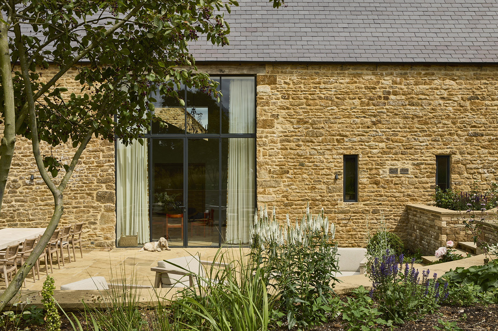 The extensive structural work, the new sympathetic stonework and the exacting finishes achieved through out have resulted in an exciting and beautiful home. OLF helped design, manage and install the new garden lay-out.